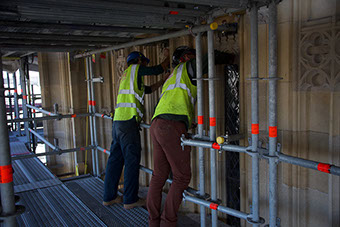 As part of the works we also re glazed the Ayrton Light at the top of the Elizabeth Tower and all of the diamond leaded windows that run up the length of the tower.